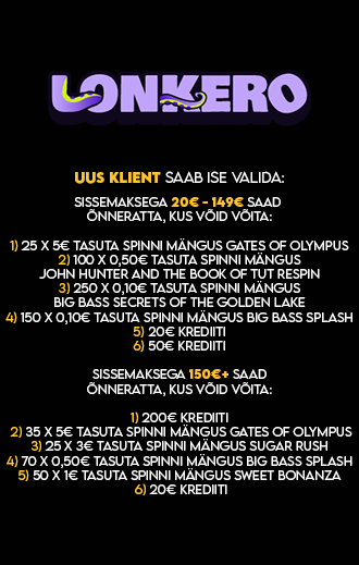 Tähelepanu! Tegemist on hasartmängu reklaamiga. Hasartmäng pole sobiv viis rahaliste probleemide lahendamiseks. Tutvuge reeglitega ja käituge vastutustundlikult!